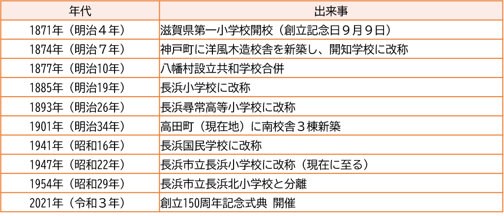 ■学校名長浜市立長浜小学校 ■所在所〒526-0037滋賀県長浜市高田町9番9号TEL0749-62-0070FAX0749-63-9925 ■創立1871年9月9日(明治4年) ■児童数768名(令和6年4月1日現在) ■学級数30学級