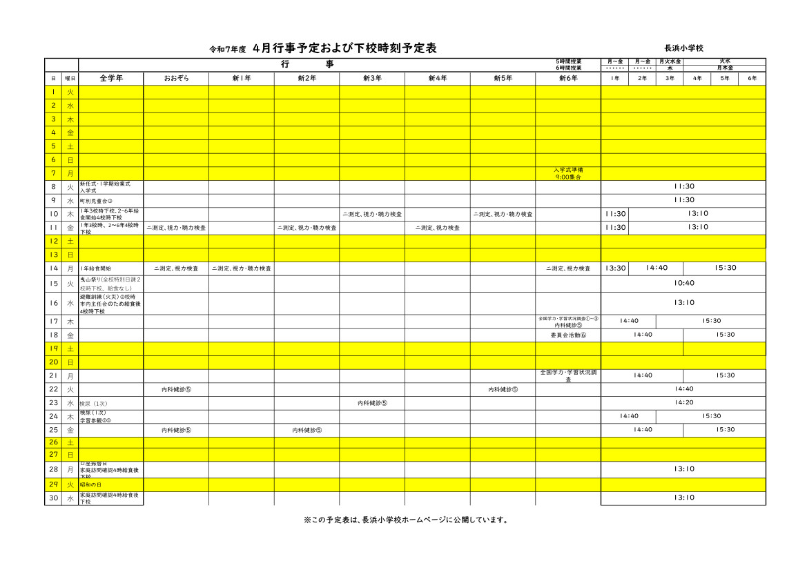 4月行事・下校予定表
