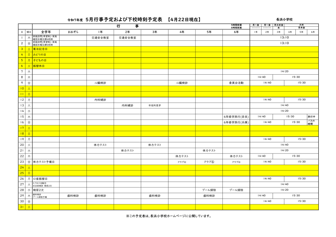 5月行事・下校予定表